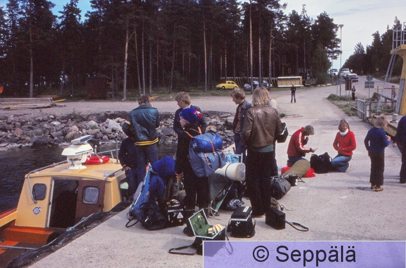 Nauvo Sammon yhteislyseon luontokerho Kuorga teki toukokuun lopulla 1976 jokakeväisen 5 vrk kevätretkensä Nauvon Kökariin ja Jurmoon. Yhteysalus hajosi, mutta Jurmossa olleet retkeilijät pääsivät Utöseen ja sieltä kalastaja suostui ajamaan meidät lähimmän bussiyhteyden varteen. Kuvassa etualalla näkyy kameralaukkuja.